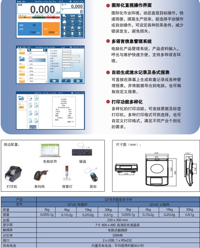 Q系列T-Touch智能秤規(guī)格: